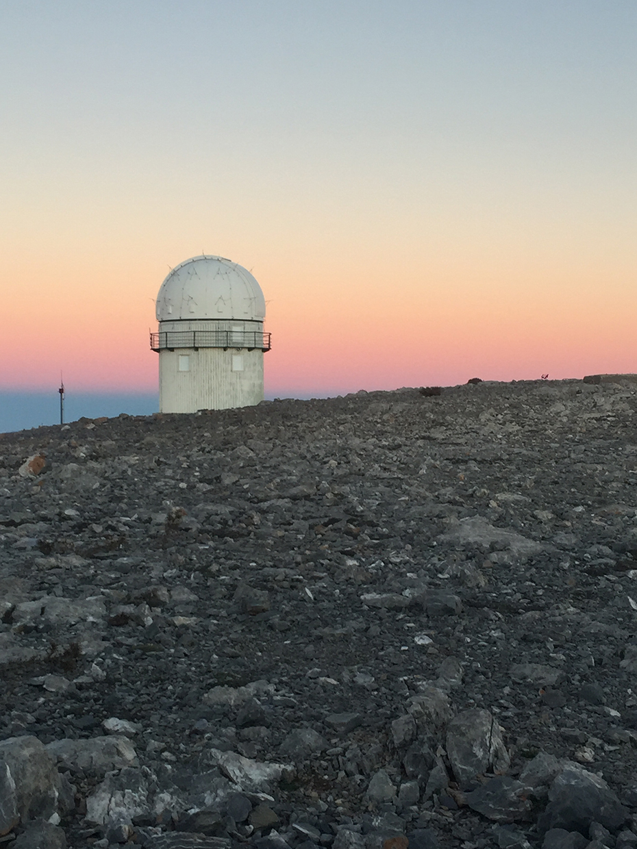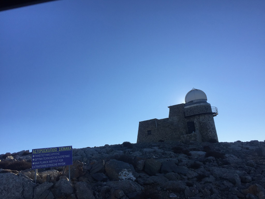 Ανεβαίνοντας στην κορυφή του Ψηλορείτη, σε υψόμετρο 1.750 μέτρων, περάσαμε από κοιλάδες με καταπράσινο χορτάρι για να φτάσουμε μέχρι το σεληνιακό τοπίο που περιβάλλει το Αστεροσκοπείο Σκίνακα. Ο αέρας ήταν πεντακάθαρος και κρύος, και η θέα έκοβε την ανάσα. Ο ουρανός φαινόταν κάπως διαφορετικός, φωτεινότερος από ό,τι έχουμε συνηθίσει, και οι οικοδεσπότες μας μας εξήγησαν ότι βρισκόμασταν πλέον πιο ψηλά από την ατμοσφαιρική ρύπανση.
