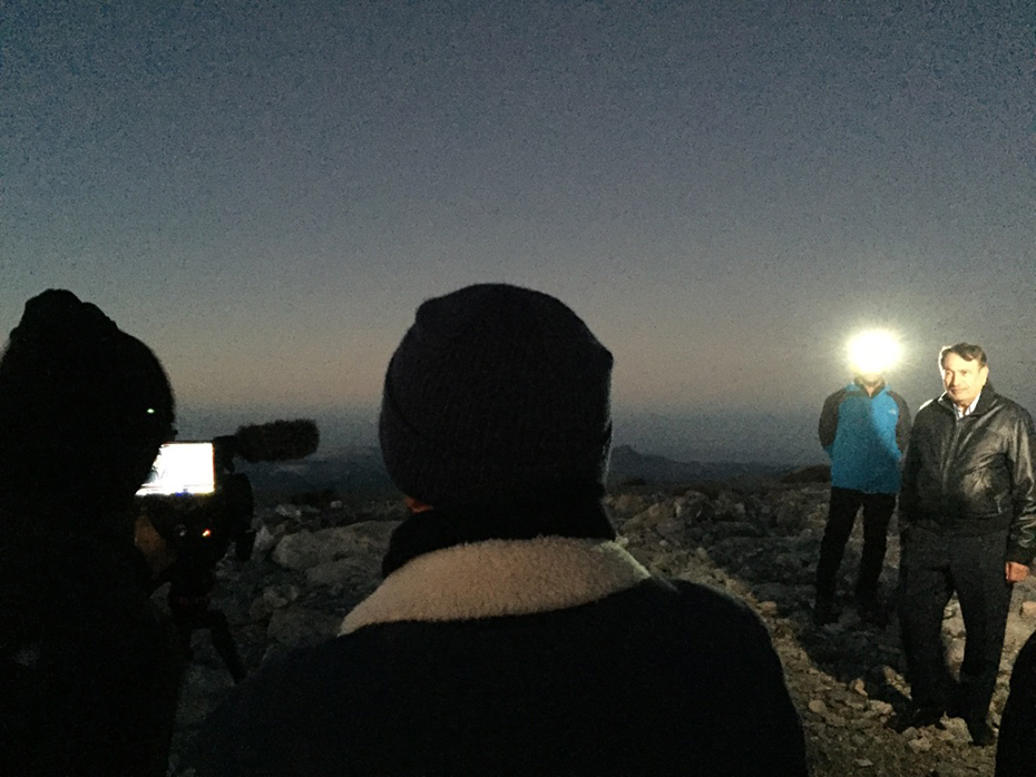 Γυρίσματα στο Αστεροσκοπείο Σκίνακα, στην κορυφή του Ψηλορείτη, σε υψόμετρο 1.750 μ. – Πηγή: ΙΣΝ