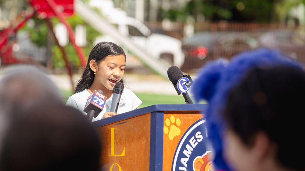 Ο αναμορφωμένος χώρος στο Δημοτικό Σχολείο Lowell, ο οποίος εγκαινιάστηκε πρόσφατα, σχεδιάστηκε σε άμεση συνεργασία με τους μαθητές του σχολείου και τους κατοίκους της γειτονιάς. Θα είναι ανοιχτός και προσβάσιμος, όχι μόνο για τους 800 μαθητές του σχολείου, αλλά και για τους 15.000 ανθρώπους που ζουν σε απόσταση 10 λεπτών με τα πόδια στο Olney, μία από τις πιο πυκνοκατοικημένες γειτονιές της Φιλαδέλφεια.