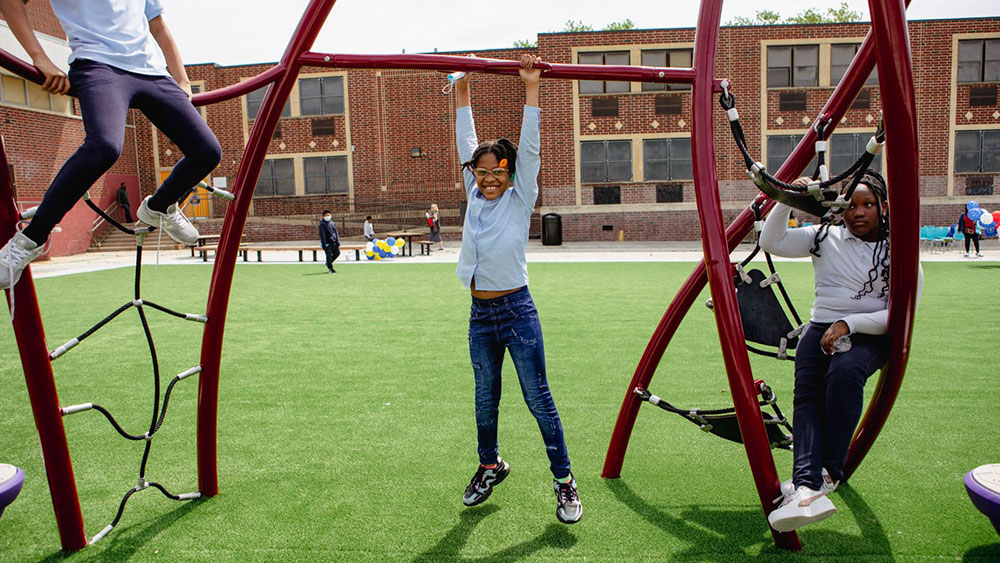 Τα παιδιά έχουν την ικανότητα να βρίσκουν χαρά ακόμα και στους πιο αφιλόξενους χώρους. Ωστόσο, γιατί θα έπρεπε να φτάνουν σε αυτό το σημείο; Στόχος του οργανισμού Trust for Public Land είναι να αξιοποιεί τους ανεκμετάλλευτους χώρους των αστικών σχολικών αυλών με παρεμβάσεις που τις μετατρέπουν σε δημόσιους χώρους παιχνιδιού που είναι φιλικοί για τα παιδιά.