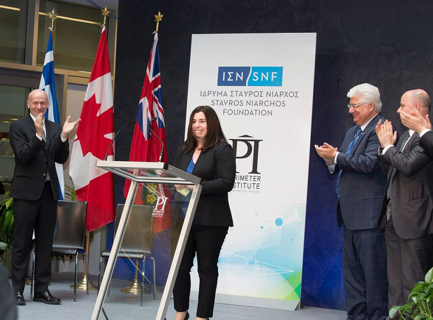 Η Ασημίνα Αρβανιτάκη επιλέχθηκε ως η πρώτη κάτοχος της νέας έδρας στο Perimeter Institute. Η δωρεά $8 εκατομμυρίων, που επιμερίζεται από κοινού μεταξύ του Ιδρύματος Σταύρος Νιάρχος και του Perimeter Institute, επιδιώκει να υποστηρίξει την πρωτοποριακή έρευνα στο πιο θεμελιώδες επίπεδο του σύμπαντος καθώς και να προωθήσει τους δεσμούς έρευνας και εκπαίδευσης μεταξύ του Perimeter Institute και της Ελλάδας.
