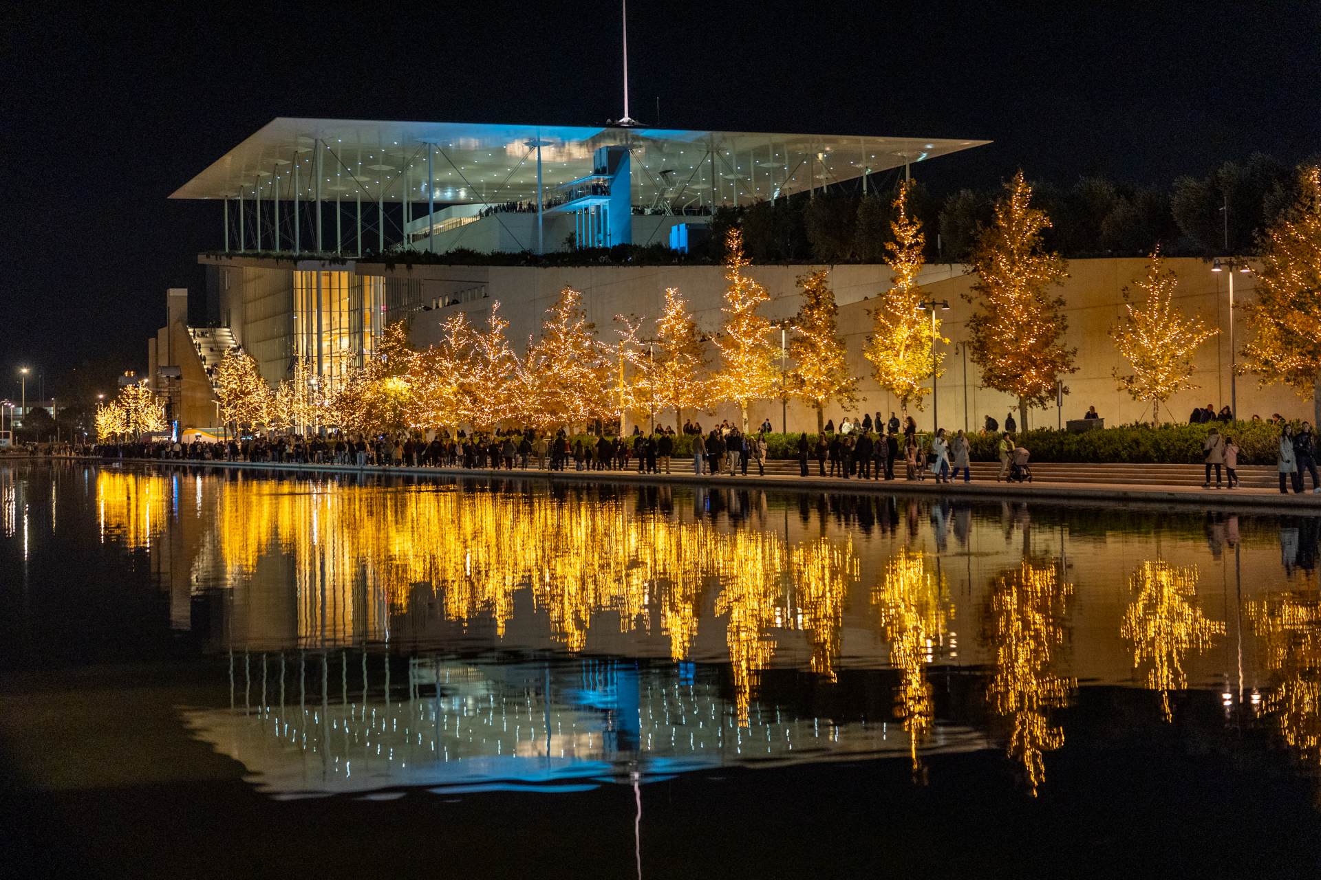 On the first day of the holiday season, November 29, my true love gave to me the illumination of the Stavros Niarchos Foundation Cultural Center (SNFCC) in Athens! The lights turned on, the ice rink opened, Stavros Niarchos Park was bathed in the glow of enchanting displays, and the SNFCC was filled with the sounds of pipers piping and drummers drumming with swing and jazz from the Loop Quartet and Nina Mazani.