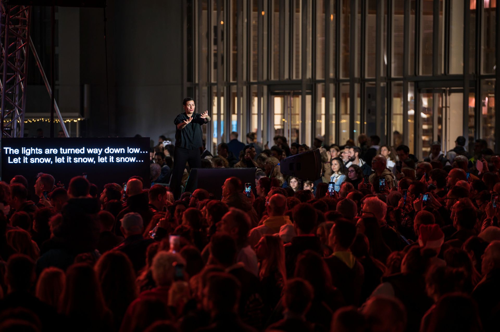 Are those turtle doves, or just NYC pigeons? Again on this first day of the holiday season (it’s a busy one), four calling birds helped fly the SNFCC’s glittering festivities across the Atlantic via live broadcast at Lincoln Center in New York as part of the Stavros Niarchos Foundation-Lincoln Center (SNF-LC) Agora Initiative. The broadcast, now an annual tradition, is part of the SNF-LC Agora Initiative, which opened a bridge of cultural and artistic exchange between Athens and New York as part of the Stavros Niarchos Foundation’s (SNF) broader efforts to reimagine more inclusive public spaces in collaboration with Lincoln Center. The event was also streamed online by the SNF Agora Institute at Johns Hopkins University and the SNF Center for the Study of Hellenic Culture at UCLA, while the SNF Centre for Hellenic Studies at Simon Fraser University is helping spread the word to their community.