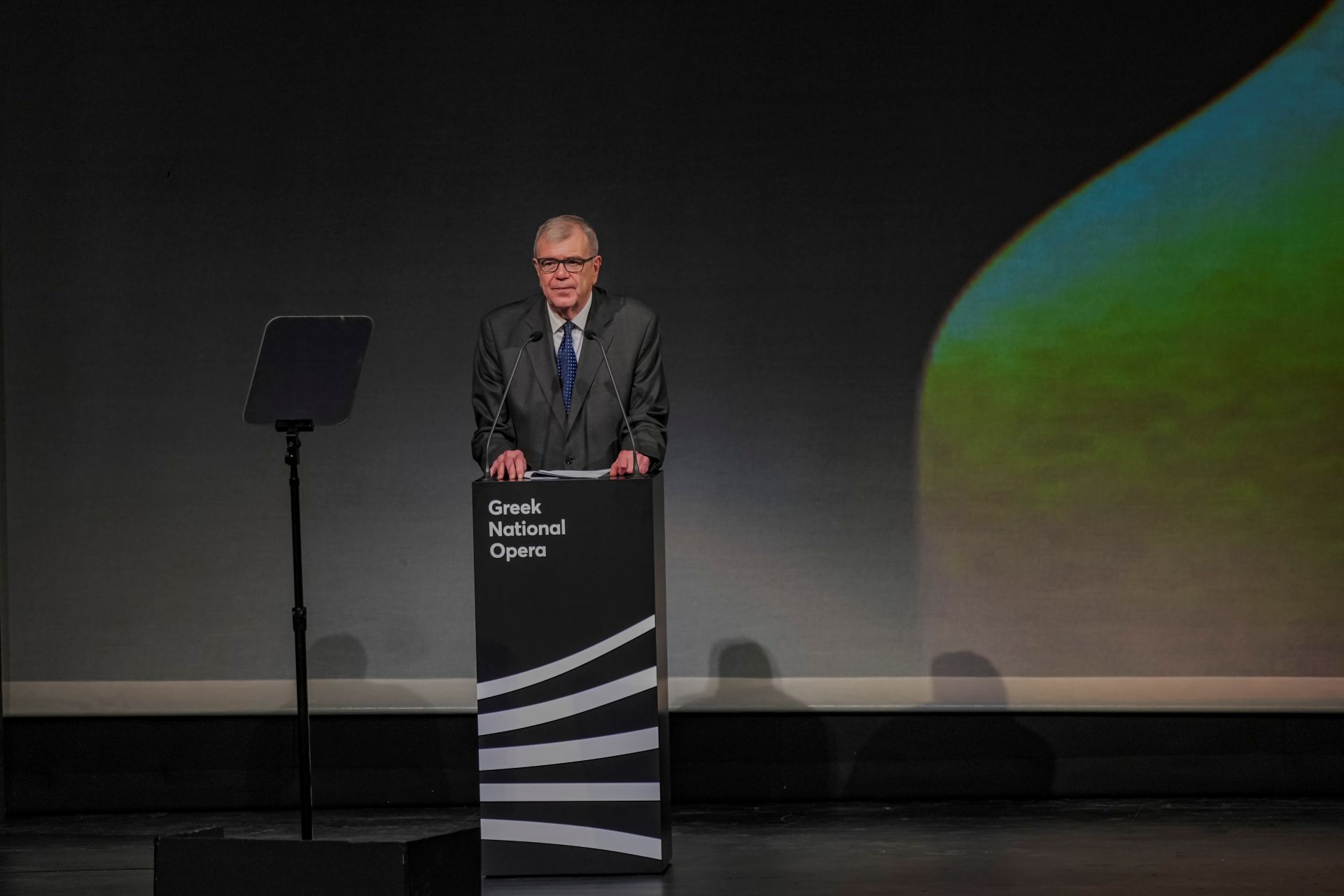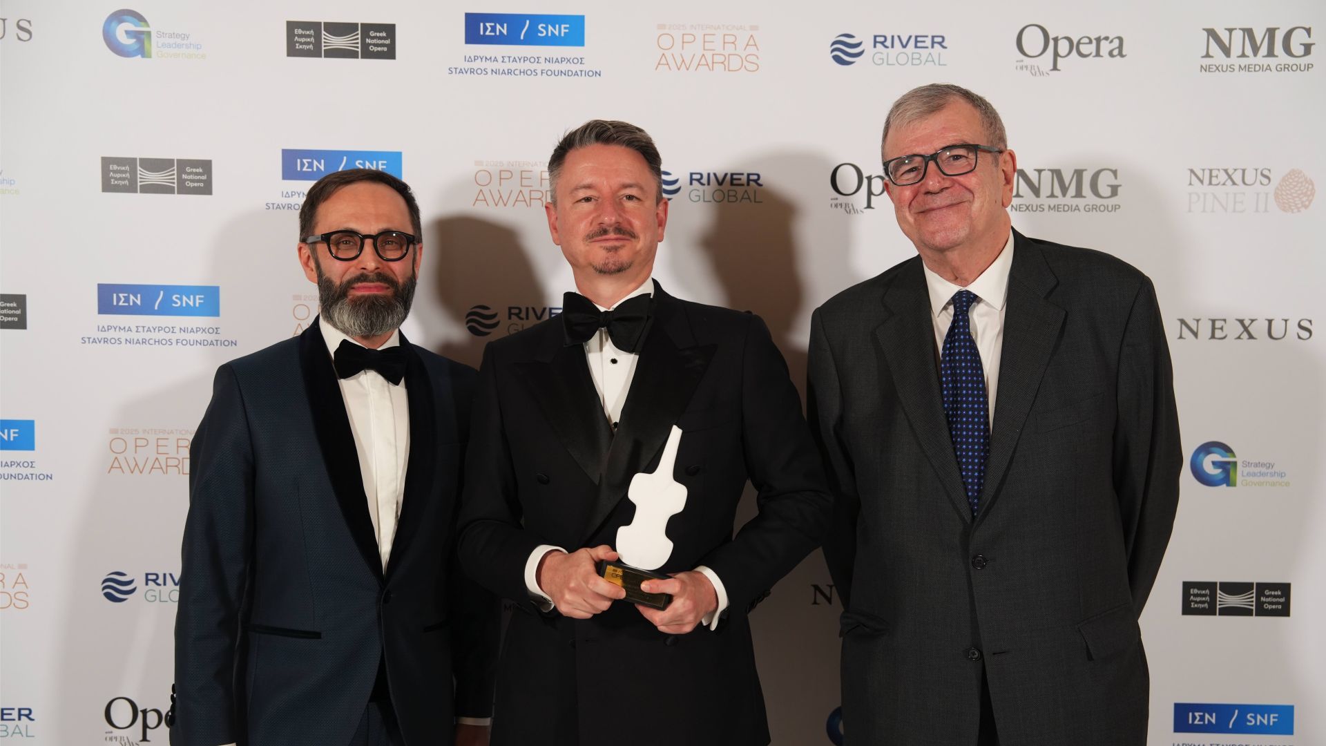 20 awards were presented, including the 2025 Opera Company Award, which went to the Austrian opera house MusikTheater an der Wien. On behalf of SNF, Board Member and Senior Legal Advisor George Agouridis presented the Best New Production Award, which honored the co-production of the opera The Adventures of Mr. Broucek, directed by Robert Carsen, between the National Theater of Brno, the Berlin State Opera, and the Royal Theater of Madrid. Introducing the awards, George said, “As admirers and supporters of the work of the Greek National Opera, we share its joy and pride at hosting the awards in Greece for the first time, here at the Stavros Niarchos Foundation Cultural Center. Under the inspired leadership of Artistic Director Giorgos Koumendakis and his team, the GNO has established itself as a major presence on the international opera scene. Bravi!”