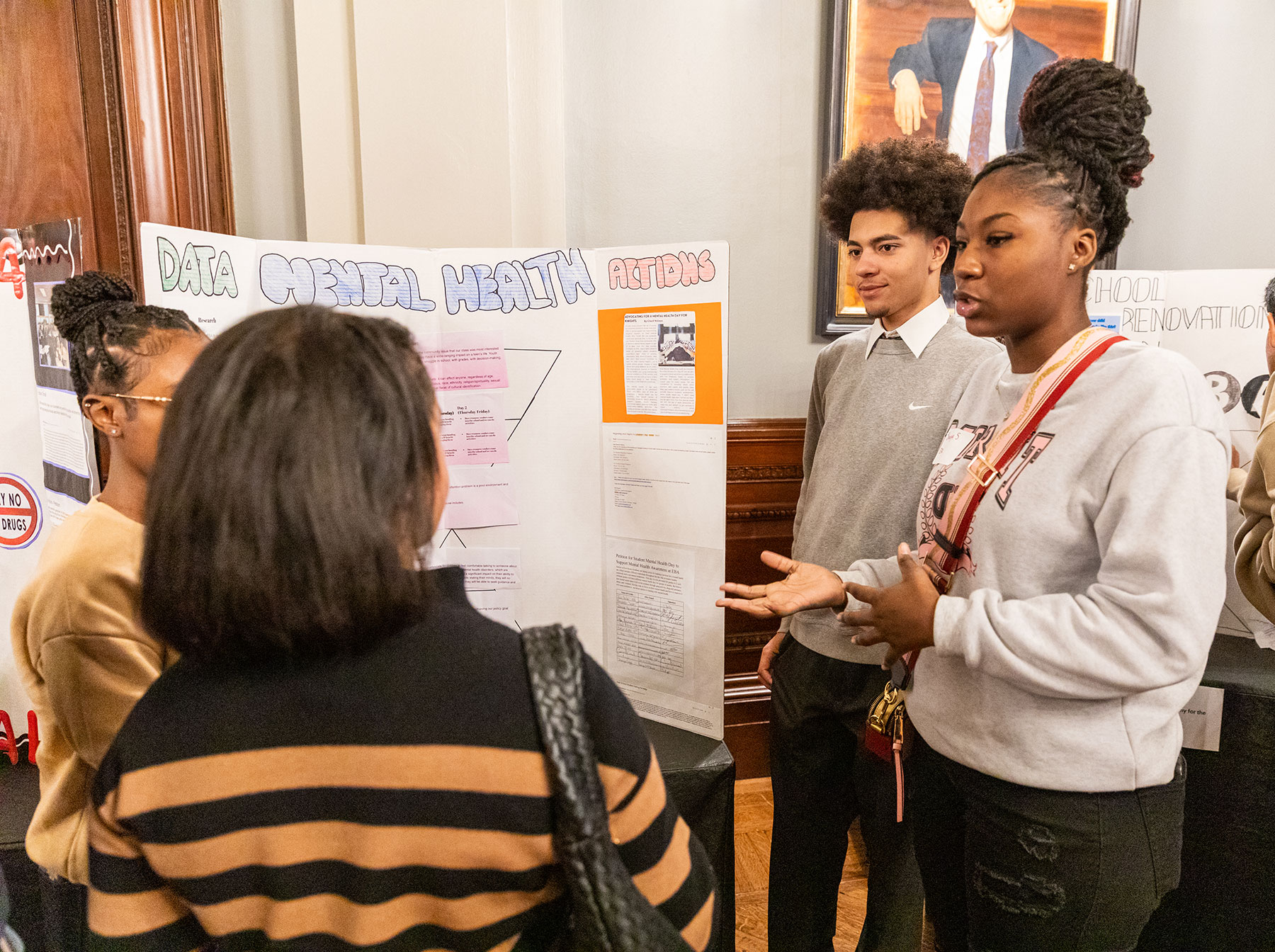 The topics they choose for those projects, like the lack of sidewalks near Andrew’s school, have immediate bearing on their health, wellbeing, and sense of belonging: lead in the drinking water at their school, the availability of feminine hygiene products at homeless shelters, resources for newly arrived immigrant students, living wages, the cost of healthcare, preserving local monuments in their communities, or having halal food available at school.